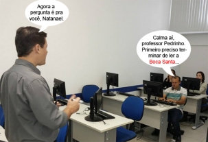 O clic é deste sábado, no Senac, onde o presidente da Câmara, Pedrinho Nespolo, deu uma aulinha para vereadores da região. Ele falou sobre a montagem de sites e como ser eficiente para divulgar ações nas redes sociais. Um dos alunos foi o presidente da Acamdoze, Natanel Faria (Araruna). E viva a internet!...