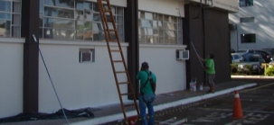 Começou nesta terça-feira a pintura externa do Paço Municipal 10 de Outubro. A "mão de tinta" está sendo dada para deixar a prefeitura mais bonitinha para uma solenidade que será realizada no domingo (16h), em comemoração aos 50 anos de inauguração do prédio. Ah, digamos que é só um "botoquezinho" básico...