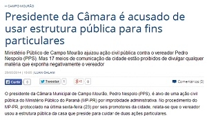 O site da Gazeta do Povo publicou matéria sobre a ação do Ministério Público contra o vereador Pedrinho Nespolo.