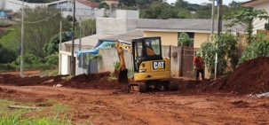 A Sanepar reiniciou a obra de rede de esgoto no jardim Araucária, que estava paralisada há 3 anos.