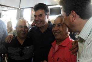 Ao participar da 12ª Festa do Leitão Maturado, neste domingo, em Goioerê, o governador Beto Richa se viu nessa situação aí. Afinal, quem é o prefeito de Goioerê? Por via das dúvidas, o governador abraçou os dois, mas que fique claro: Beto Costa, o prefeito, é o que está de camisa vermelha. À esquerda quem aparece é Nato Costa, o irmão gêmeo do alcaide. Bom, pelo menos foi o irmão da direita que fez o discurso na hora do almoço...