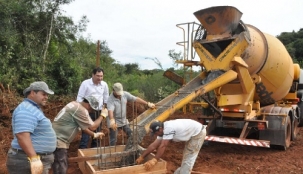Mamborê - O prefeito Nei Calori foi acompanhar o início da construção da nova ponte de concreto sobre o rio Sununun. A obra, de 15 metros, está sendo feita com recursos próprios e irá substituir a ponte de madeira que existe nas proximidades. Segundo Calori, a nova ponte vai evitar um desvio de cerca de 20 km.
