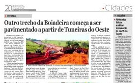 O trabalho é entre Tuneiras do Oeste e Nova Brasília (Araruna), onde o asfalto parou.