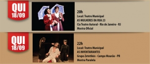 Às 22h a Cia Zetetikós, de Campo Mourão, apresenta “As inventariantes”.