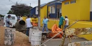 Goioerê - O prefeito Beto Costa foi dar uma olhada nas reformas da Casa Cultura. Os serviços incluem pintura, adaptação para permitir o acesso a deficientes físicos e a construção de calçadas. Ih, mas material de construção, assim, na rua, pode?...