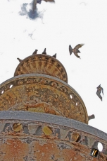 “A foto é do chafariz da praça Getúlio Vargas, em Campo Mourão. Com o ar seco, as pombinhas aproveitam para bebericar na fonte, formando um intenso ‘tráfego aéreo’”. Irineu Ricardo