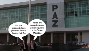 Olha aí mais um clic do Palácio Iguaçu feito no dia em que o governador Beto Richa recebeu em audiência uma caravana de Campo Mourão e região. Ao todo, 17 prefeitos estiveram por lá, além de vice-prefeitos, vereadores, secretários e presidentes da Santa Casa, da Codapar e do Ipáguas, entre outros. Como não houve brigas, digamos que a faixa surtiu efeito...