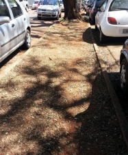"Canteiro central da av. José Custório de Oliveira, entre as ruas São Paulo e Harrison José Borges. Grama plantada pela prefeitura já secou. Aquilo está uma vergonha, uma sujeira só".