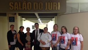 Na foto, o promotor está junto com familiares das vítimas.