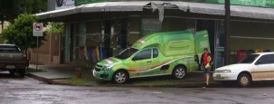 "Carro estaciona na calçada, na rua Araruna, para fazer carga e descarga. Infelizmente, alguns cidadãos não ajudam a cumprir a sleis".