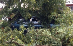 O temporal desta quarta-feira à tarde voltou a derrubar árvores públicas em Campo Mourão. Essa aí, na av. Goioerê, caiu em cima de um Corsa de Umuarama que passava pelo local. Ninguém se feriu. Como a árvore era grande e o carro verde, conforme o ângulo nem era possível ver o veículo. Que susto!...