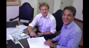 A foto mostra o secretário de Estado Pepe Richa (Infraestrutura) assinando livro ata de sua nomeação na pasta no segundo mandato do governador-irmão Beto Richa. Repare que ao lado está o mourãoense presidente da Codapar, Tino Staniszewski. Segundo Pepe, Tino foi o "avalista" da posse. Sobre a Codapar, que fique claro: o mourãoense já tinha sido nomeado antes, através do Conselho de Administração da empresa. Ah, tá pensando o quê!...