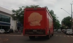 As duas fotos foram feitas nesta segunda-feira, por volta das 14h30, com uma diferença de meia hora entre uma e outra. Os caminhões estão na av. Capitão Índio Bandeira, em frente à Caixa Econômica. A diferença é que um vai no sentido centro-saída pra Maringá e outro o inverso. Ou seja: vem caminhão de todo lado. E tanto abuso que chega a dar a impressão que é de propósito, só pra sair na Boca Santa...