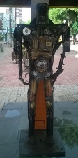 Olha só o que apareceu no calçadão, no centro de Campo Mourão: um robô. Foi deixado no quiosque da Boca Maldita, em frente ao bar do Raul. O autor é o artista plástico J.C. Amaral, de Quinta do Sol, que deixou o robô, que tem tamanho de gente, em exposição. Ah, digamos que é o Robocop desarmado...