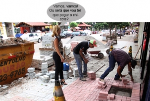 Olha aí a prefeita Regina Dubay de volta ao calçadão. Ela foi dar uma olhada na última etapa da revitalização do local. O tão falado paver agora está sendo colocado do "outro lado" da av. Capitão Índio Bandeira, que também é considerado parte do calçadão.