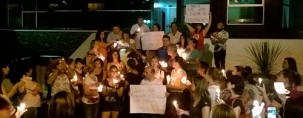 Com velas acesas e cartazes, eles protestaram contra o "desmonte da educação".