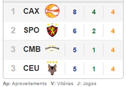 Caxias do Sul/RS lidera com oito pontos, seguido do Sport/PE, com seis.