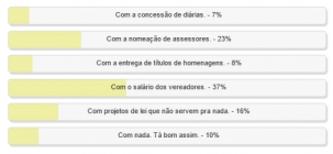 Enquete encerrada nesta terça-feira deu vitória à alternativa “Com o salário dos vereadores”, com 37% dos votos.