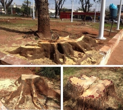 A prefeitura de Goioerê informou no início do mês que iria revitalizar a praça Luige Depaolli, em frente à Igreja Matriz. Falou em nova iluminação e tal. Só não avisou que iria derrubar as árvores por causa disso. Umas 15 foram derrubadas. Um massacre. Será que precisava?...