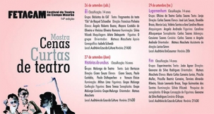 Nem só de mostra oficial vive o 14º Festival de Teatro de Campo Mourão. A partir deste sábado começa a Mostra de Cenas Curtas de Teatro. O primeiro é “Ili” (Bolsistas do CAT), na Casa da Cultura (21h30). No domingo (21h30) será a vez de “Histórias de urubus” (Grupo Malunga). Na terça-feira tem “Lugar nenhum” (Grupo Oficina Carlos Soares), no auditório da Unicesumar (20h), e “Fim” (Experimentos), na Casa da Cultura (21h30).