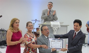Com a presença de sete vereadores, foi entregue neste domingo a moção para a 4ª Igreja Presbiteriana Renovada. A entrega aconteceu na própria igreja. O pastor Takemi José Luiz Tagata recebeu a homenagem do vereador-autor, Toninho Machado, e da prefeita Regina Dubay. A sessão foi conduzida por Edilson Martins. O deputado Márcio Nunes também participou. Ah, domingão à noite, pensa que é fácil?...