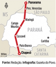 Pelo projeto, a ferrovia vem de Panorama/SP e passa por Maringá, Campo Mourão, Cascavel e Pato Branco, seguindo a Chapecó/SC.
