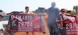 Eles não permitiram que faixas contra o governo fossem levadas para perto do palco onde ocorreram os discursos.