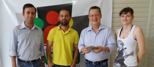 Lembra que pesquisadores da Unespar acharam às margens da BR-158, entre Campo Mourão e Peabiru, vestígios do que pode ser de uma grande floresta de araucária? As pesquisas ainda precisam ser aprofundadas, mas um nó-de-pinho que pode ter 6 mil anos foi doado à prefeitura de Peabiru. O achado ficará no Museu do Caminho de Peabiru. Olha aí o prefeito Claudinei Minchio exibindo, todo faceiro, a relíquia.