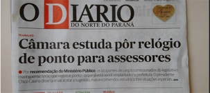Manchete desta quinta-feira do jornal “O Diário”, de Maringá, diz que a Câmara de Vereadores estuda a possibilidade de por relógio ponto para assessores. Cá pra nós: atrasadinha essa Maringá, hein? No legislativo de Campo Mourão isso existe há muito tempo.