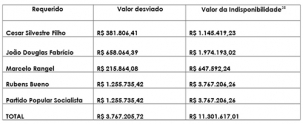 Para Rubes Bueno o pedido é de R$ 3,7 milhões (veja todos os valores no quadro acima).