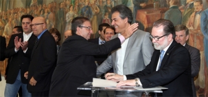 Olha ali o prefeito Reinaldo Krachinski cumprimentando o governador.