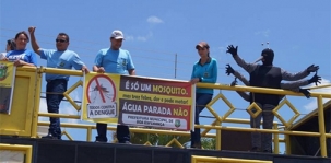 Em época de muito calor, muita chuva e verão chegando com tudo, o mosquito da dengue faz a festa e as prefeituras entram em alerta vermelho. Cada uma se vira como pode para chamar a atenção da população no combate ao Aedes aegypti. Em Boa Esperança, teve até trio elétrico pelas ruas pedindo a colaboração dos moradres. E olha o “dengão” ali, deitando e rolando.