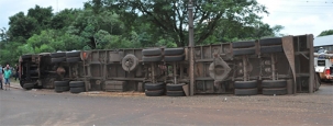 Uma carreta bitrem tombou no fim da tarde deste domingo quando passava pelo perímetro urbano de Mamborê. O motorista perdeu o controle quando passava por uma rotatória. O caminhão, com placa de Iretama, estava carregado de milho. Ninguém se feriu. Ao virar, o bitrem atingiu um poste de luz e boa parte da cidade ficou sem energia por mais de uma hora.