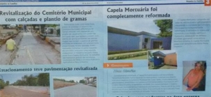 Com quatro páginas, o informativo cita a colocação de pêiver em ruas internas, do plantio de grama e da reforma da capela mortuária.