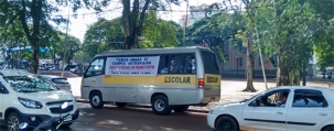 “Não bastasse a falta de vagas no centro de Campo Mourão, nesta terça-feira três vans escolares ocupavam vagas numa mesma quadra, na av. Capitão Índio Bandeira, para fazer propaganda para o início do ano letivo”.
