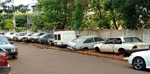 Carros velhos são deixados sobre a calçada entre as ruas Lemos do Prado e das Lontras, no jardim Pio 12. Moradores reclamam do risco de proliferação do mosquito da dengue. Sem contar que calçada não é estacionamento de carro, novo nem velho. Foto: www.tasabendo.com