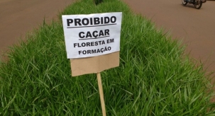 ...perder o bom humor jamais. Foi o que fez algum morador da av. Goioerê, perto da rua Santo Dummont. Com a grama do canteiro central cada dia mais alta, alguém colocou uma placa local alertando que a floresta está em formção e é proibido caçar. Foto: João Silvestrin