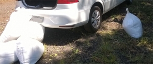A Polícia Rodoviária Federal apreendeu neste domingo um Voyage que levava oito sacos com cerca de 200 kg de um pó branco. A apreensão aconteceu numa estrada rural perto do pedágio da BR-369, entre Campo Mourão e Mamborê. Detalhe: um teste feito pela polícia descartou que seja cocaína. Como o motorista fugiu não deve ser sal, nem açúcar, né?...