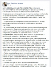 Foi Nespolo quem denunciou supostas irregularidades ao MP, o que gerou a supensão por parte da prefeitura.