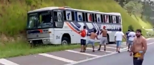 Torcedores de Corinthians e São Paulo entraram em conflito neste domingo, por volta das 12h30, quando estavam a caminho o estádio de Itaquera. O confronto aconteceu a cerca de 100 km do estádio, na região de Valinhos. Dois ônibus de corintianos e dois de são-paulinos se encontraram. Um dos busões era do Expresso Nordeste e teve todos os vidros quebrados. Detalhe: havia escolta da PM, que não conseguiu evitar a briga. Em tempo: apesar do ônibus de Campo Mourão, os torecedores não eram da "terrinha".