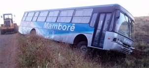 Olha onde foi parar o ônibus do transporte escolar de Mamborê. Foi nesta sexta-feira pela manhã, na estrada do Guarani, quando cerca de 40 crianças estavam sendo levadas para escolas da cidade. Uma mola quebrou e fez o motorista perder o controle, com o busão só parando após cair num barranco. Segundo a prefeitura, todas as crianças foram levadas para exames médicos e, apesar do suste, ninguém teve maiores ferimentos.