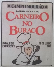 ...para o prato típico ser servido na 25ª Festa Nacional do Carneiro no Buraco. O cartaz ao lado é o da segunda edição do evento, realizada em 1992. O prefeito continuava sendo Augustinho Vecchi, que repetiu o cartaz da primeira festa, só atualizando os números e a data.