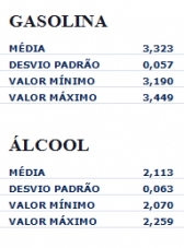 Na média é vendido a R$ 3,323, variando de R$ 3,190 a R$ 3,449.
