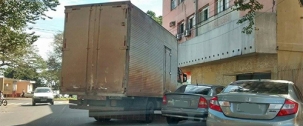 2) Cena comum em Campo Mourão. Caminhão usa a vaga em diagonal e fecha a rua. O flagra foi feito na terça-feira, por volta das 11h, na rua Roberto Brzezinski, perto da av. Manoel Mendes.