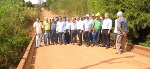 O prefeito Lola Poeira os vereadores Pé de Boi e Fio foram mostrar a situação da ponte sobre o rio Papagaio.