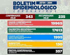 Campo Mourão voltar a registrar mais 343 casos de covid-19 nesta quinta-feira. O número de casos ativos foi a 1.995, recorde desde o inicio da pandemia. Também foram confirmadas mais duas mortes - homem de 53 anos e mulher de 78. A taxa de ocupação de leitos está em 75% na enfermaria, 50% na UTI SUS e 30% na UTI convênios.