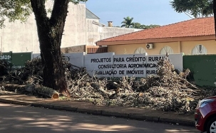 Rua Santa Cruz, em frente ao IAP. Cortaram uma bela quantidade de galhos e deixaram lá. Já fez quase 15 dias e a galhada já está até seca.