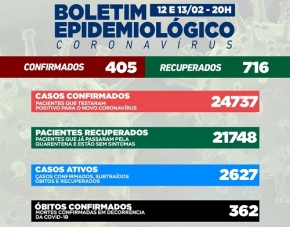 O boletim deste domingo traz mais 405 casos de covid-19 em Campo Mourão. Não é recorde porque são dois dias (sábado e domingo). Os recuperados foram 716 e o número de casos ativos caiu para 2.627. Foi confirmada a morte de uma mulher de 82 anos. Na ala covid o índice de ocupação de leitos do SUS está em 162% na enfermaria e 70% na UTI, onde estão internados seis mourãoenses.