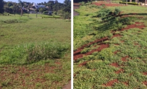 "Enquanto a prefeitura se preocupa em derrubar as árvores saudáveis da cidade, o Parque do Lago se encontra assim em pleno verão".