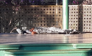 Morador de rua dorme no coreto da praça Getúlio Vargas, em Campo Mourão.